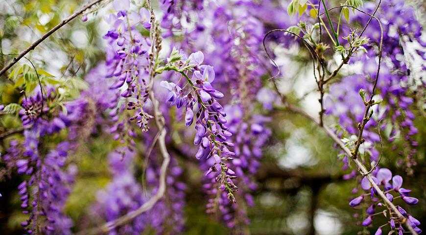 Глициния — в переводе «сладкая» — относится к древовидным лианам семейства бобовых. Растет только в местах с мягким субтропическим климатом, поэтому, несмотря на все обещания некоторых продавцов, у нас она расти не будет.