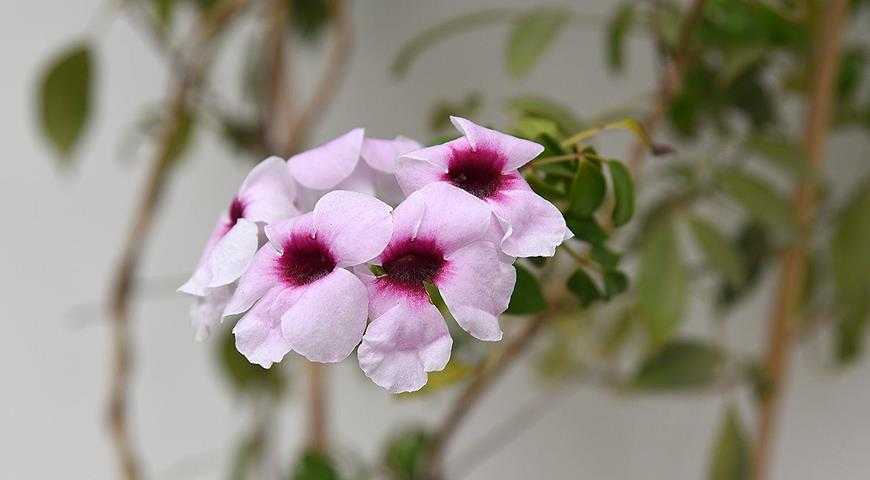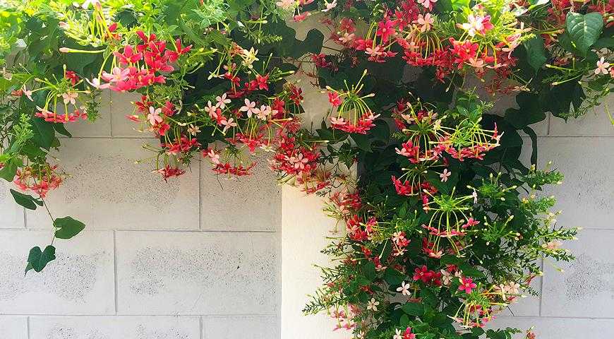 Одна из красивейших вечнозеленых лиан с ароматными цветами меняющими окраску в процессе цветения: от белого до красного. Может вырасти в длину до 6 м.