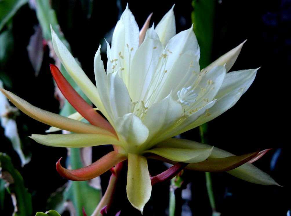 Пожалуй, единственный из Эпифиллумов, который имеет несколько названий – Хукера, Остролепестной и Белый. Лучше всего, посадить такой кактус в широкий напольный горшок или же подвесной, так как он довольно сильно разрастается. Остролепестным его прозвали из-за формы листьев на стеблях, а белым – из-за цветов. Цветёт, кстати, кактус красиво. Цветков много, они большие, белые, приятно пахнут и свисают вниз.