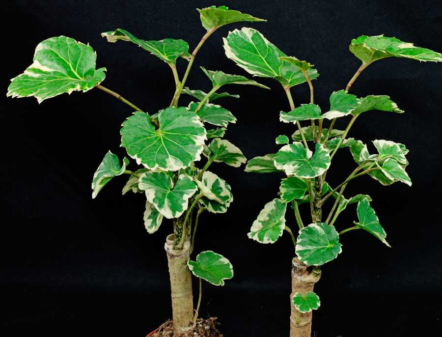 Этот вид формирует не очень высокие кустики, его стебли полностью покрыты листвой. У насыщенно зеленых листьев имеется белая окантовка. Пока листовые пластины молодые, они обладают округлой формой, но по мере их старения она сменяется на дважды либо трижды рассеченную, причем на поверхности могут появляться пятнышки желтого цвета. Лучшие сорта: