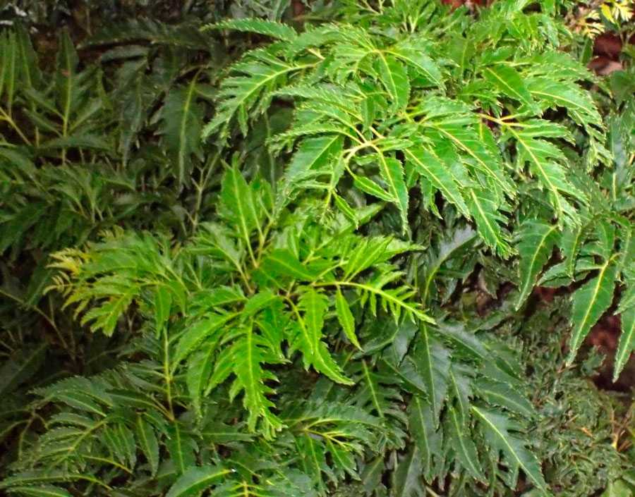У этого кустарника, который является вечнозеленым, имеются длинные перисто-рассеченные листовые пластины зеленого цвета, которые схожи с вайями папоротника. Длина листвы варьируется от 0,3 до 0,5 м, при этом дольки у нее расположены плотно.