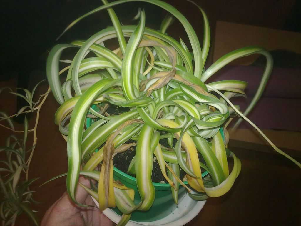 Еще одна потенциальная причина — слишком высокая температура содержания. Если в комнате жарче 30°С, то спасти декоративность хлорофитума можно опрыскиваниями.