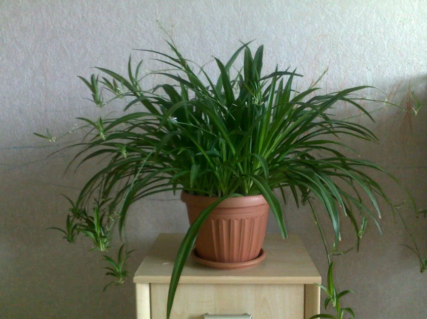 На фото: Хлорофитум хохлатый (Chlorophytum comosum)