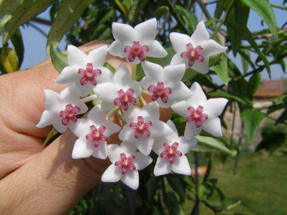 Наиболее культивируемый вид хойи. Ценится садоводами и огородниками за способность принимать любые формы и размеры. Выращивается на стеблях. Соцветие содержит десятки мелких, но очень ароматных цветков. Цвет листьев и цветов зависит от сорта.