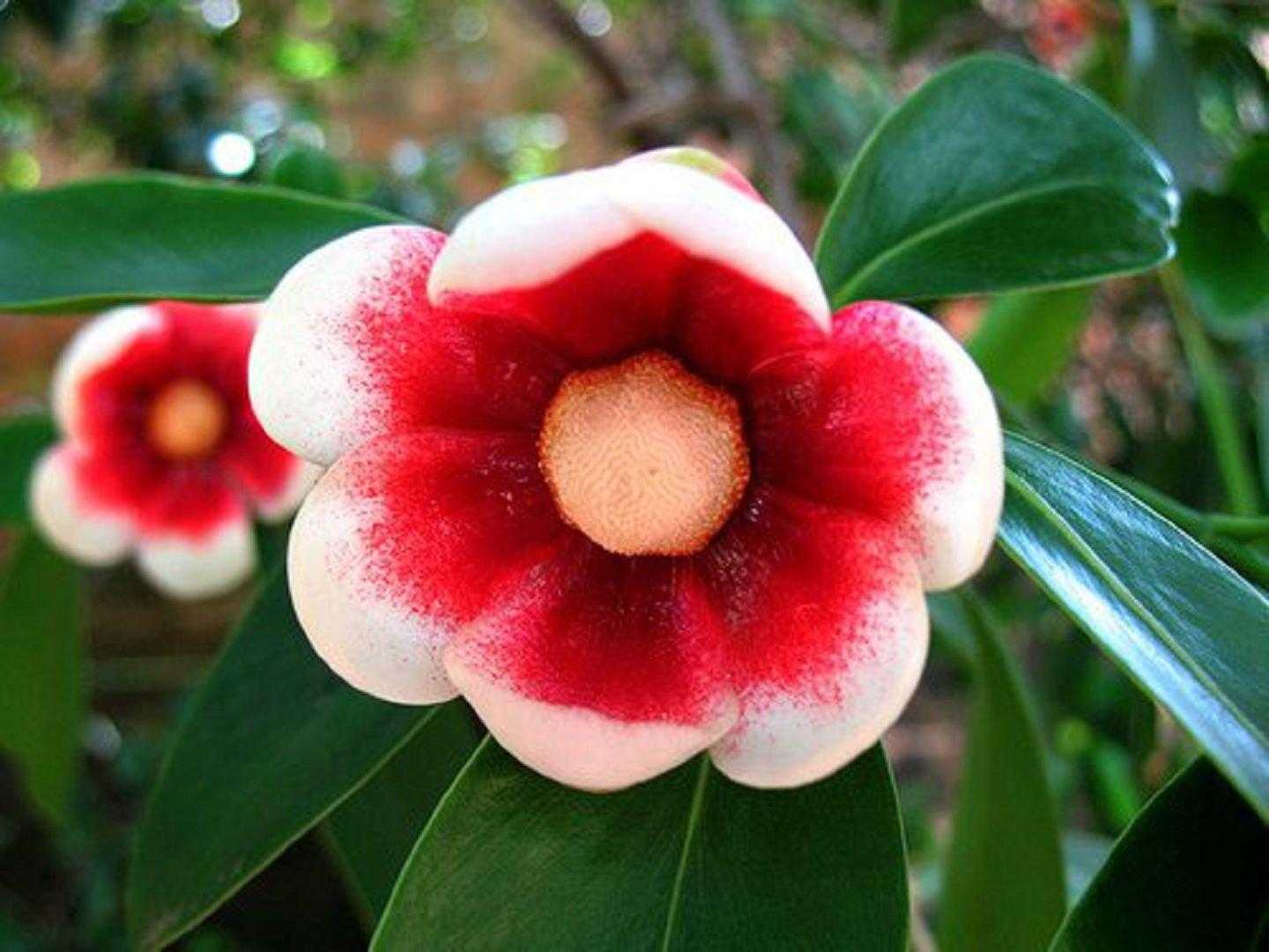 Вечнозеленое деревце, которое в природе достигает 3 м в высоту. Листья ланцетные длиной до 7,5 см. Цветки колосовидные диаметром 5 см. Внутренняя поверхность лепестков покрыта красными пятнышками.