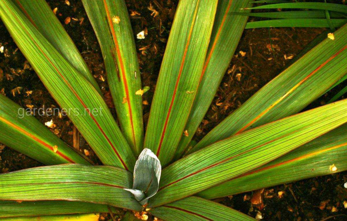 Кордилина австралийская или южная — еще один популярный вид, отличающийся тонкими саблевидными листьями. Встречаются пестролистные формы, украшенные желтыми или красными продольными полосками;