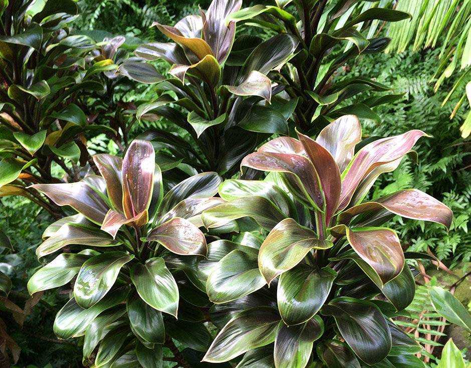 Радуют взгляд яркие листья кордилины верхушечной