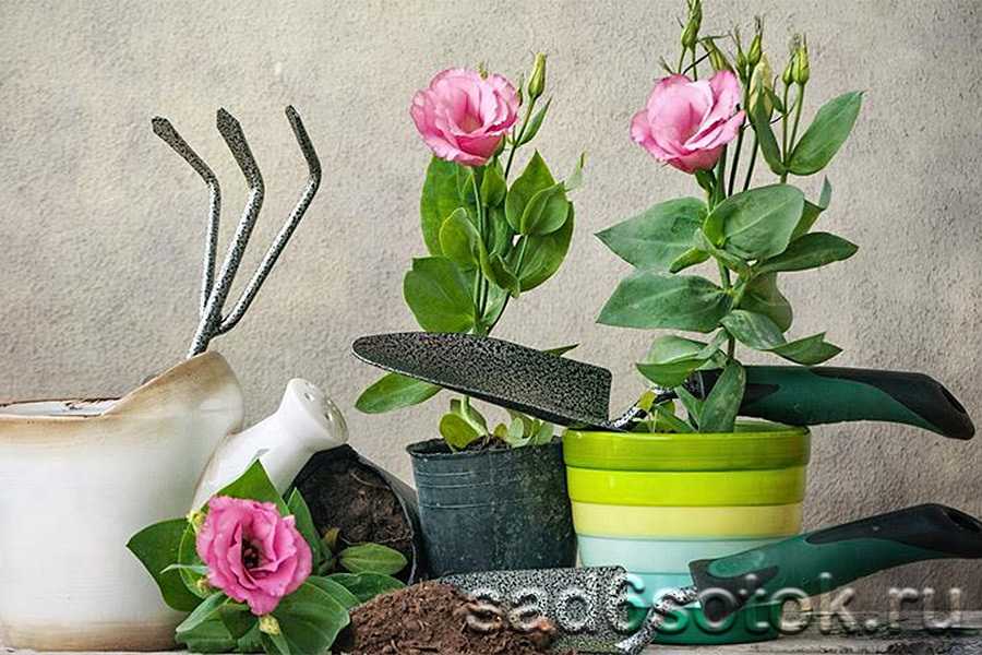 Выращенный на клумбе сильный куст по осени можно пересадить в широкий объемный горшок, обрезав стебли и оставить зимовать в непромерзаемом помещении, время от времени поливая. Желательна температура в пределах 8–10°C. Весной от корней появятся нежные ростки, и как только минует угроза заморозков, стоит размножить эустому делением корневища.