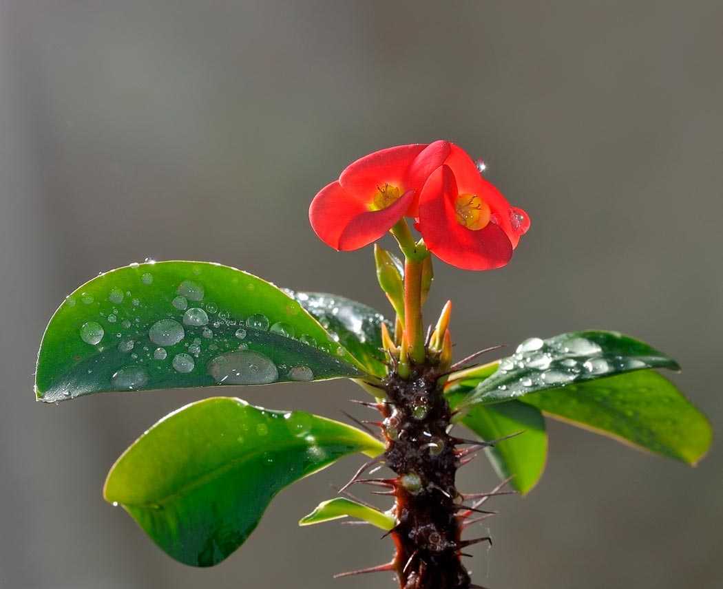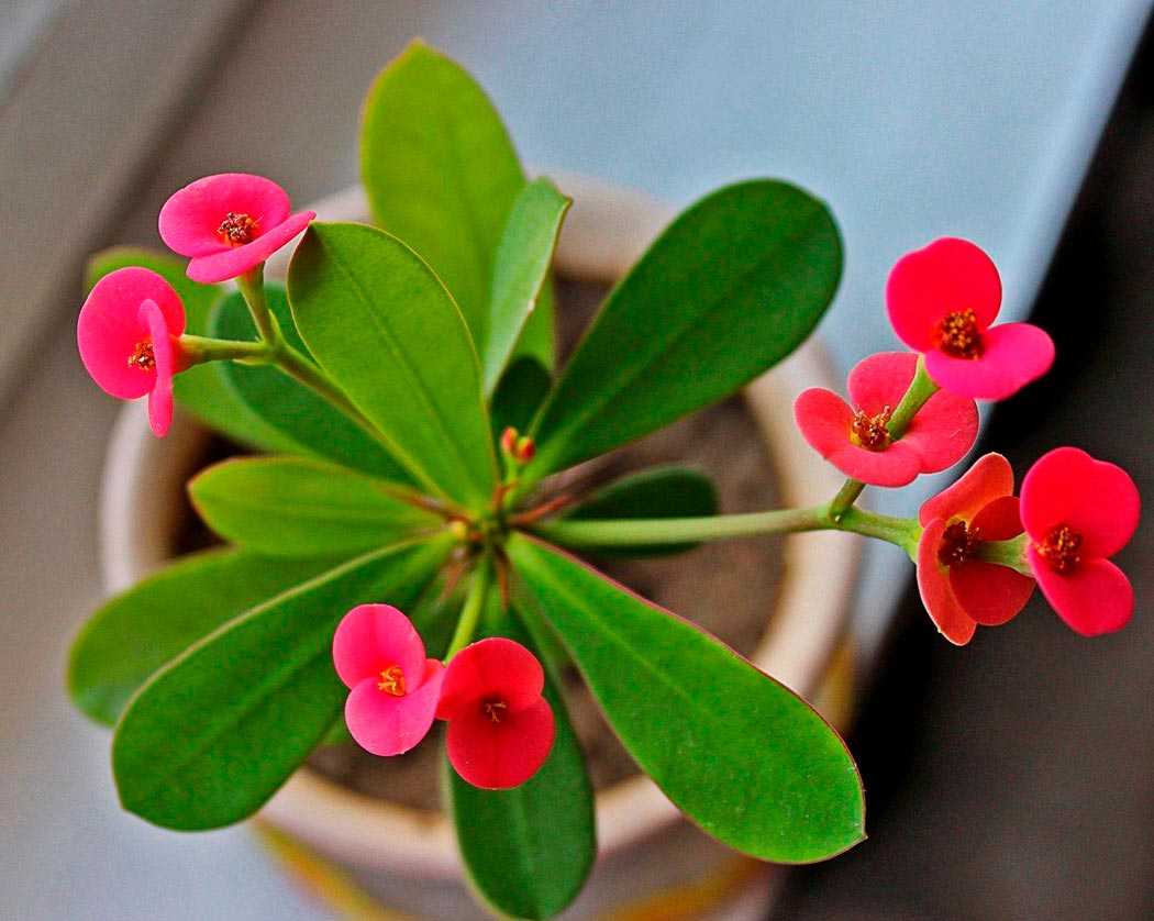 Опрыскивания цветок молочай не требует, но зимой постарайтесь держать его на холодном светлом окне подальше от батареи центрального отопления.
