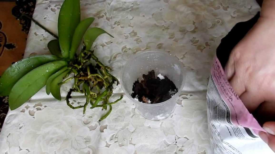 Этот метод помогает сохранить земляной ком вместе с уже привычной средой обитания орхидеи. Плюс в том, что адаптация будет протекать намного легче.