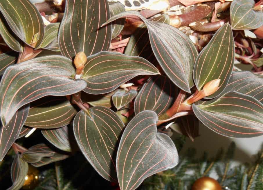 - Лудизия разноцветная var. rubrovenia имеет листовые пластины эллиптической формы, поверхность которых окрашена в бронзовый колер с рисунком медными прожилками;