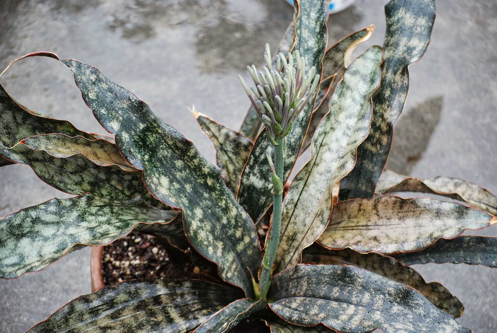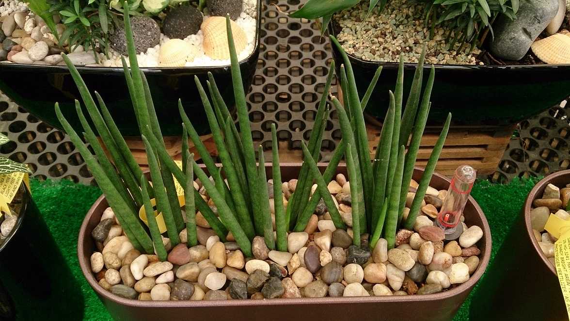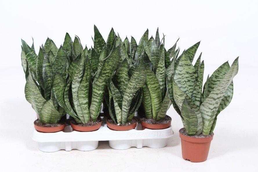 Цветок в стиле минимализма – выглядит очень аккуратно,без лишних деталей. Прямые листья конической формы имеют темно-зеленый окрас и собраны в компактные прикорневые розетки. Цветы также не выбиваются из общей концепции, так как они имеют маленький размер и спокойный кремовый цвет. «Тёщин язык» этого вида не прихотлив в домашнем уходе, поэтому подойдет даже тем людям, которым приходится часто и надолго уезжать из дома.