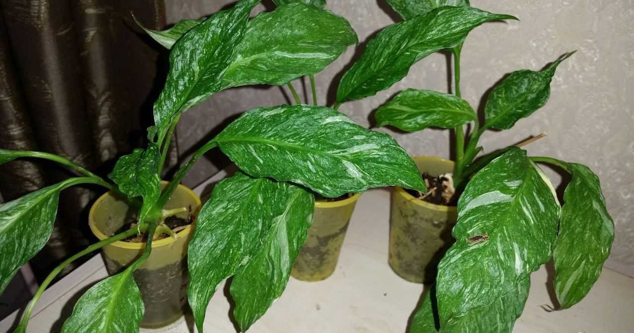 От материнского растения осторожно отделяют боковые отростки вместе с корнями, стараясь их не повредить, затем деленки рассаживают в отдельные емкости с субстратом для взрослого спатифиллума и ухаживают за ними, как рассказывалось в предыдущей главе