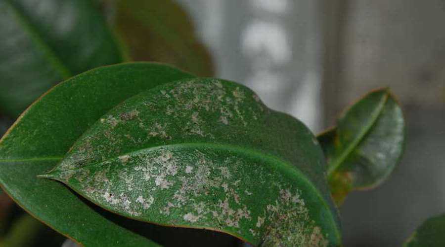 На каждого вредителя растения реагируют особым способом: могут менять цвет листьев, замедлять свой рост. При визуальном осмотре комнатного растения можно заметить изменения листьев, стеблей.