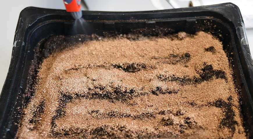 Затем мелкие семена присыпьте сверху грунтом / вермикулитом или чистым песком. Увлажните из пульверизатора и накройте посевы пленкой, стеклом или прозрачным пластиком.
