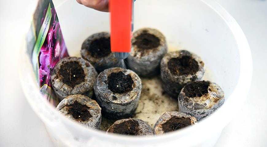 - Перед посевом семян торфяные таблетки замочите в воде.